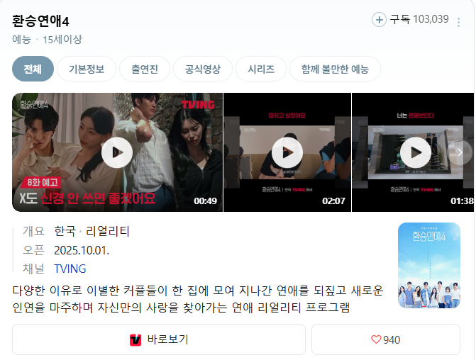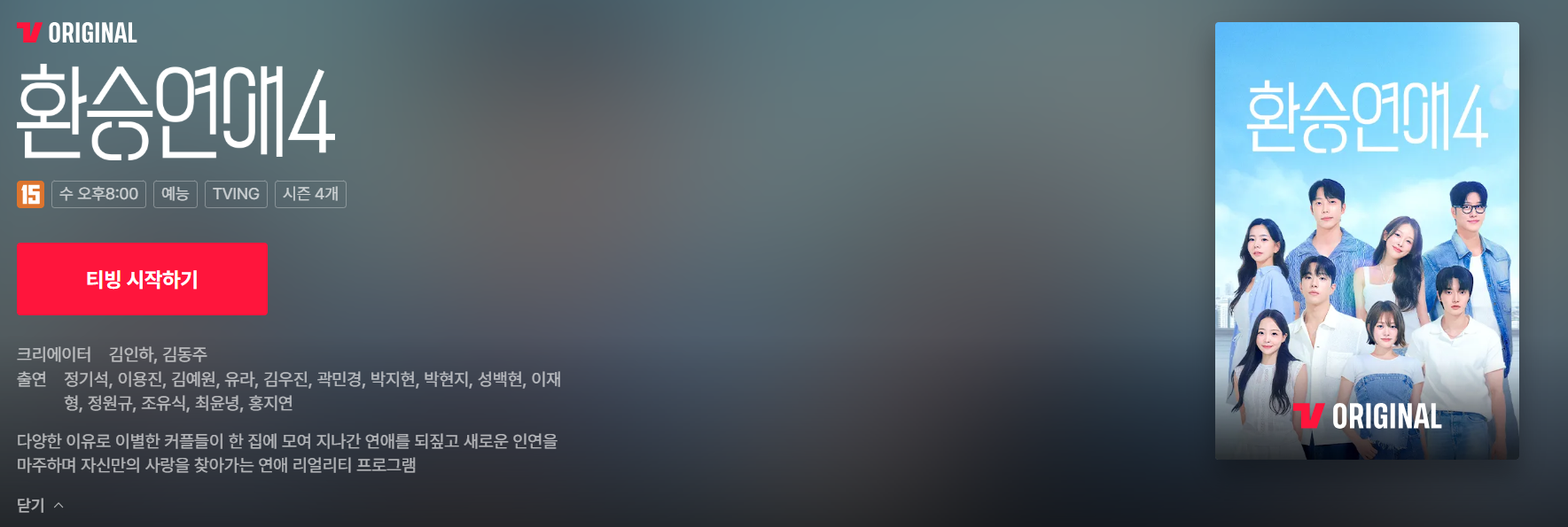 티빙(TVING)의 인기 연애 리얼리티 예능 ‘환승연애4’, 드디어 베일을 벗었습니다.